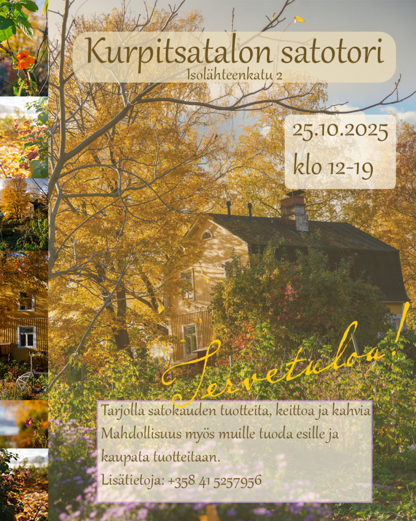 Taasen yksi kesä alkaa olla takana, ja kasvien maanpäällinen kasvu alkaa olemaan hiljalleen hiipunut. Tervetuloa meidän lämminhenkiseen satotoriin, joko itse myymään satokauden tuotteitasi tai sitten ihan vain ihmettelemään paikan päälle. Siinä sivussa sitten voi lämmikkeeksi ottaa hieman maa-artisokkakeittoa ja kahvin kera jotakin lisuketta.